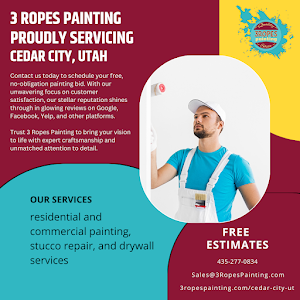 Offering painting excellence in Cedar City, UT for over 10 years, 3 Ropes Painting has been the trusted name for residential and commercial painting services in Cedar City, UT. We specialize in both interior and exterior painting, perfecting the art of transforming spaces while offering additional services to meet all your needs. From flawless drywall repairs and stucco restoration that enhances exterior appeal to durable and elegant epoxy floor refinishing, we ensure every project exceeds expectations. At 3 Ropes Painting, our dedication shines through unmatched attention to detail, superior craftsmanship, and a commitment to turning your vision into reality with precision and customer satisfaction at the forefront.